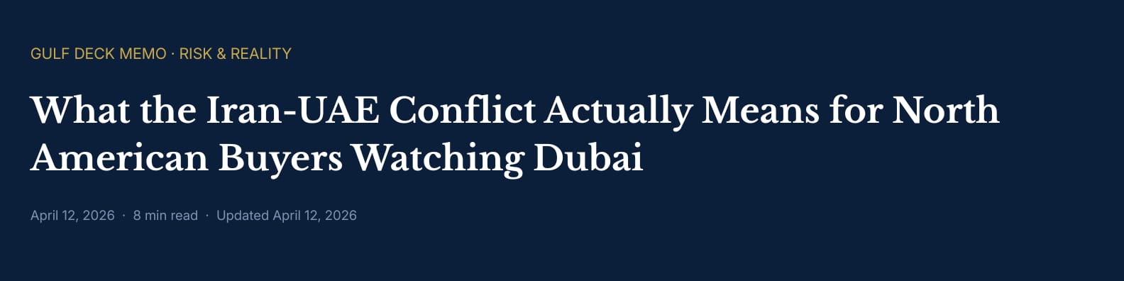 For five weeks, every North American investor with Dubai on their radar has been asking some version of the same question: should I still proceed? This memo isn't that email. It's an honest look at what actually happened, what the data shows, and what a rational buyer should be thinking before moving in either direction.